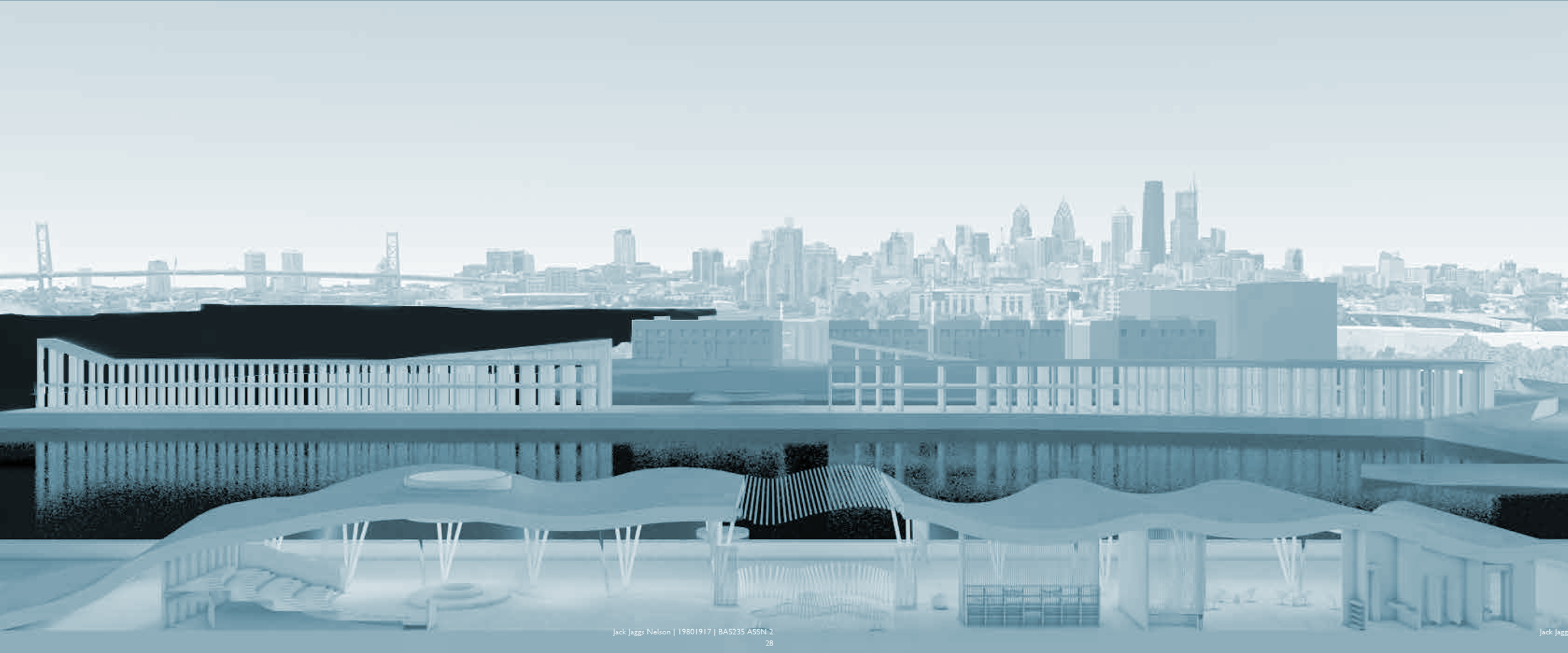This dichotomy is reflected in the design of the community center, with one side reflecting the mass construction techniques of traditional Philadelphia (masonry with small openings), and the other utilizing the modern tectonic web of timber, reinforced concrete and large openings of Modern Philadelphia.
